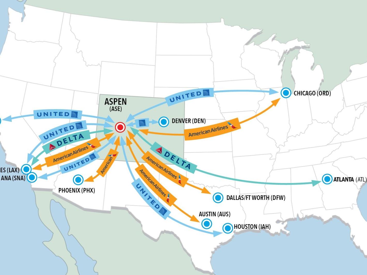 How To Get To Aspen In Winter Lots Of Direct Flights Flight Map Winter 2013 2014 Flight Map Aspen Snowmass Plan Your Trip